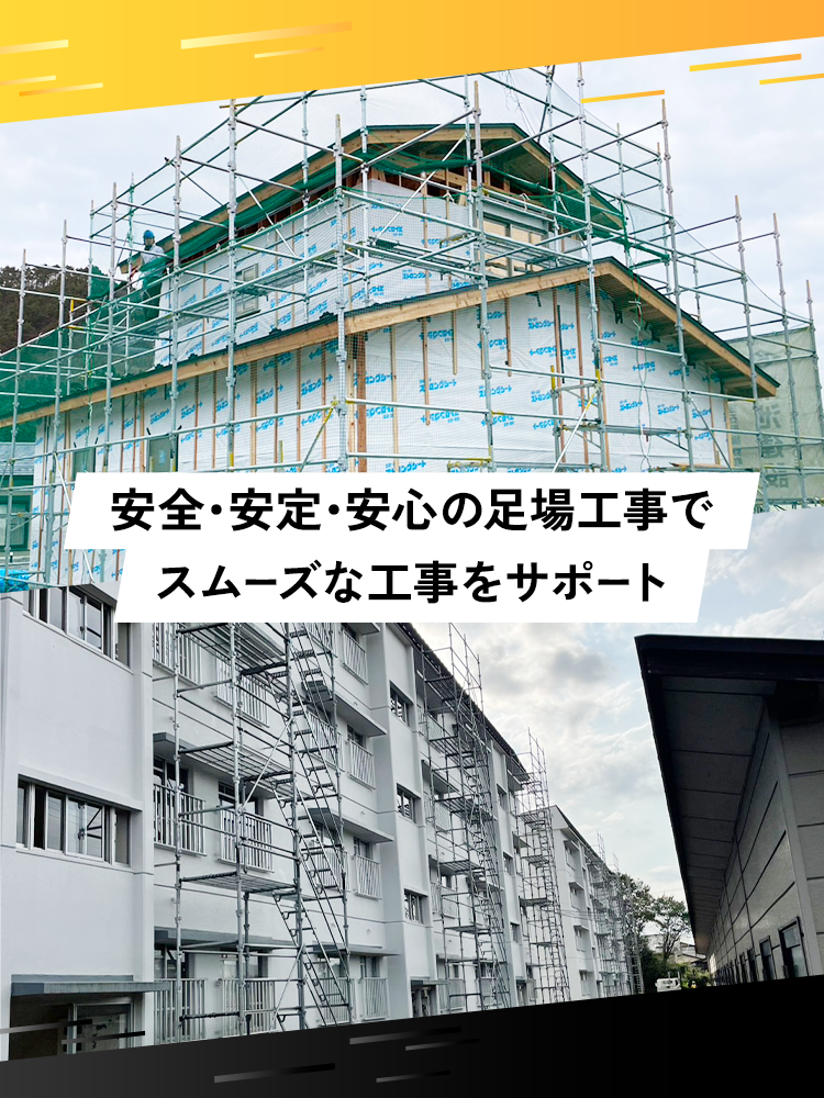労働災害ゼロを目指し、「現場にいるすべての人が安心して作業できる足場」をご提供いたします。
