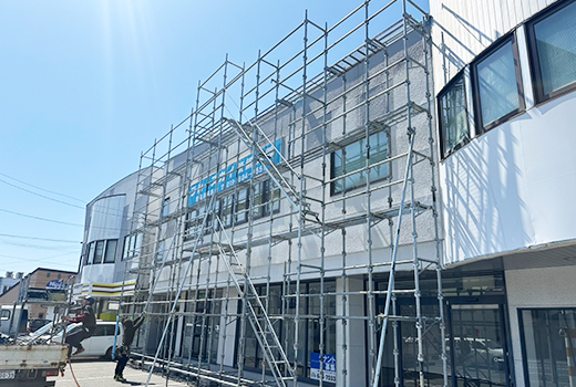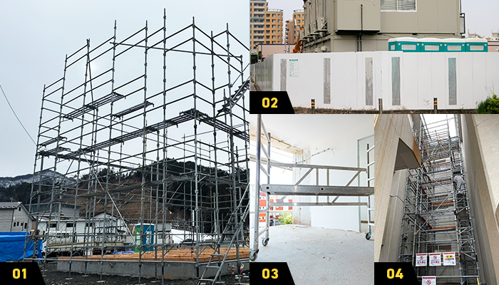 仮設という名前ではありますが、決して簡易的な足場ではありません。作業者の身の安全を守るためにほかの足場と同様、しっかりと手抜かりのない施工を行いますのでご安心ください。