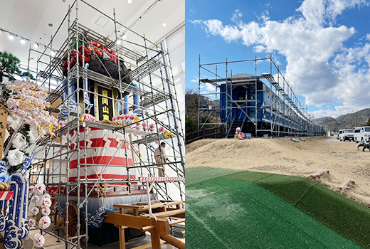 また当方ではこれまでにも、『盛岡山車』の組立て・解体用の足場や、電車の車両塗装といった現場にも対応しております。複雑なつくりの建造物にも施工が可能なため、ぜひ一度ご相談ください。