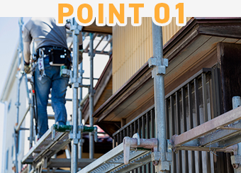 工具や資材をもった状態でも、スムーズな移動や作業ができる、誰にとっても使いやすい足場をつくります。