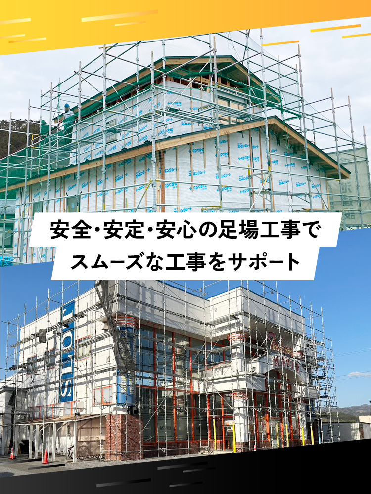 労働災害ゼロを目指し、「現場にいるすべての人が安心して作業できる足場」をご提供いたします。