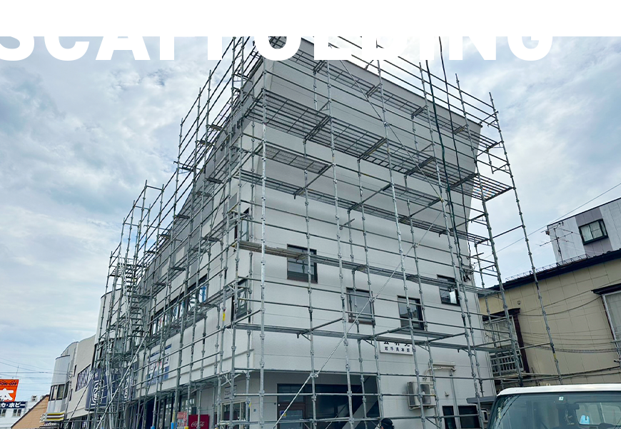 雄工では、盛岡市をはじめ岩手県のさまざまな建設現場で足場工事の施工にあたっております。